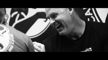HELPING EACH OTHER GET GOOD AT ARMWRESTLING, AND HAVING FUN DOING IT.